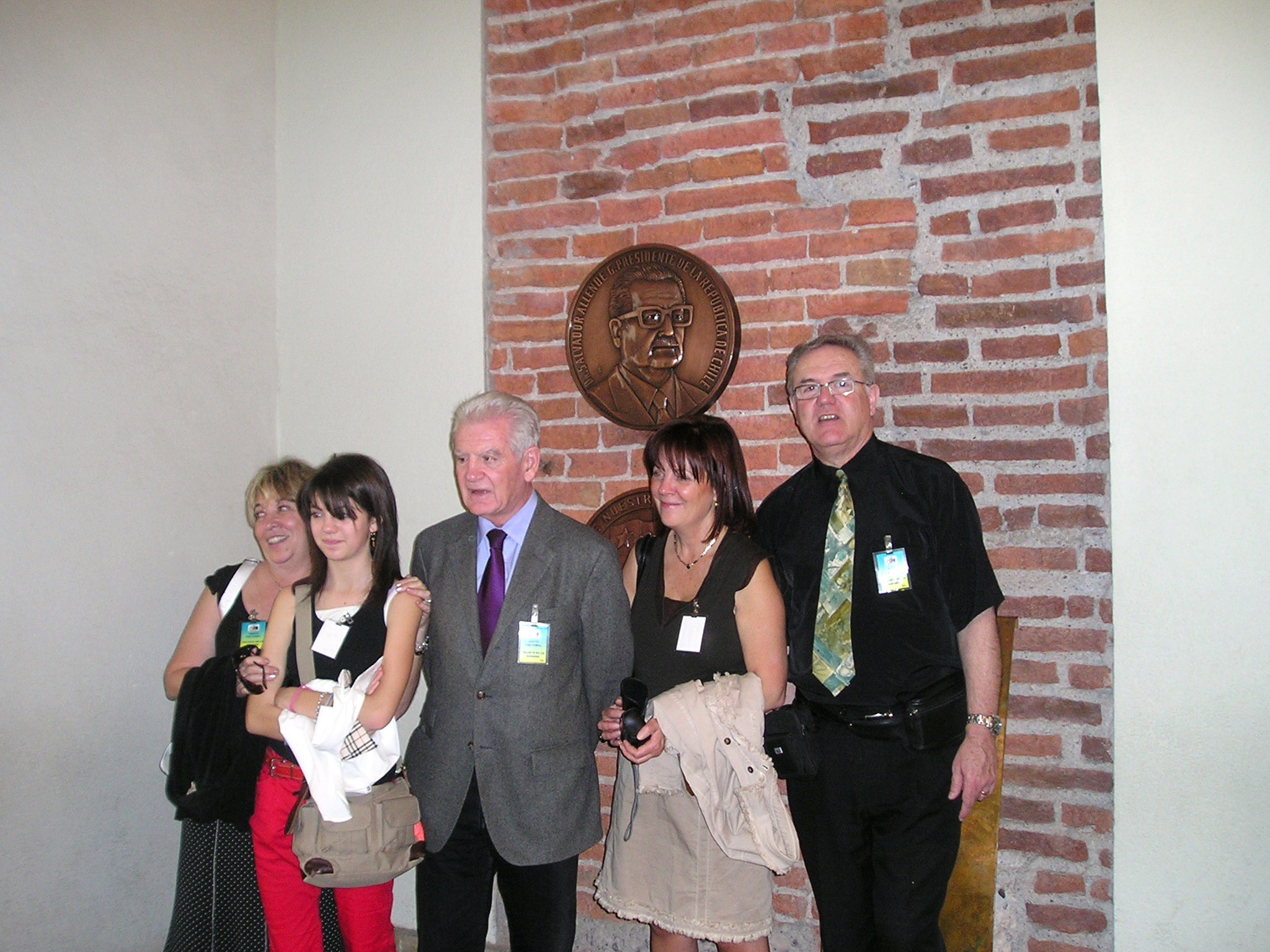 Sur un mur de briques rouge sang, deux médaillons de cuivre rappellent qu’Allende et ses compagnons ont perdu la vie pour avoir voulu transformer leur idéal en réalités populaires. Dénudé, simple, proche de ces matériaux avec lesquels on a construit, dans tous les quartiers de la planète, des maisons pour les ouvriers, le rectangle tranche avec le revêtement immaculé qui le cerne. Face à ce coussin de terre cuite, soigneusement aménagé, il est impossible de parler. La gorge se noue. Les yeux se baissent. Des pensées furtives traversent les regards. Le groupe se serre. Personne n’ose se confronter à la dure réalité de ce profil d’un homme d’État ayant préféré la mort à un sort humiliant et sombre.